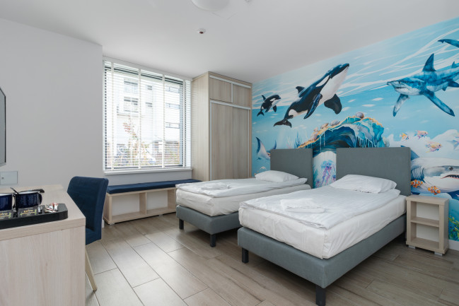 11 pokoi dwu, trzy oraz czteroosobowych zapewnia komfortowy nocleg w przyjaznej aranżacji. Dodatkowo wygÅ‚uszone gwarantujÄ… ciszÄ™ i spokój po zabawie w aquaparku. Pokoje wyposażone sÄ… w rÄ ...